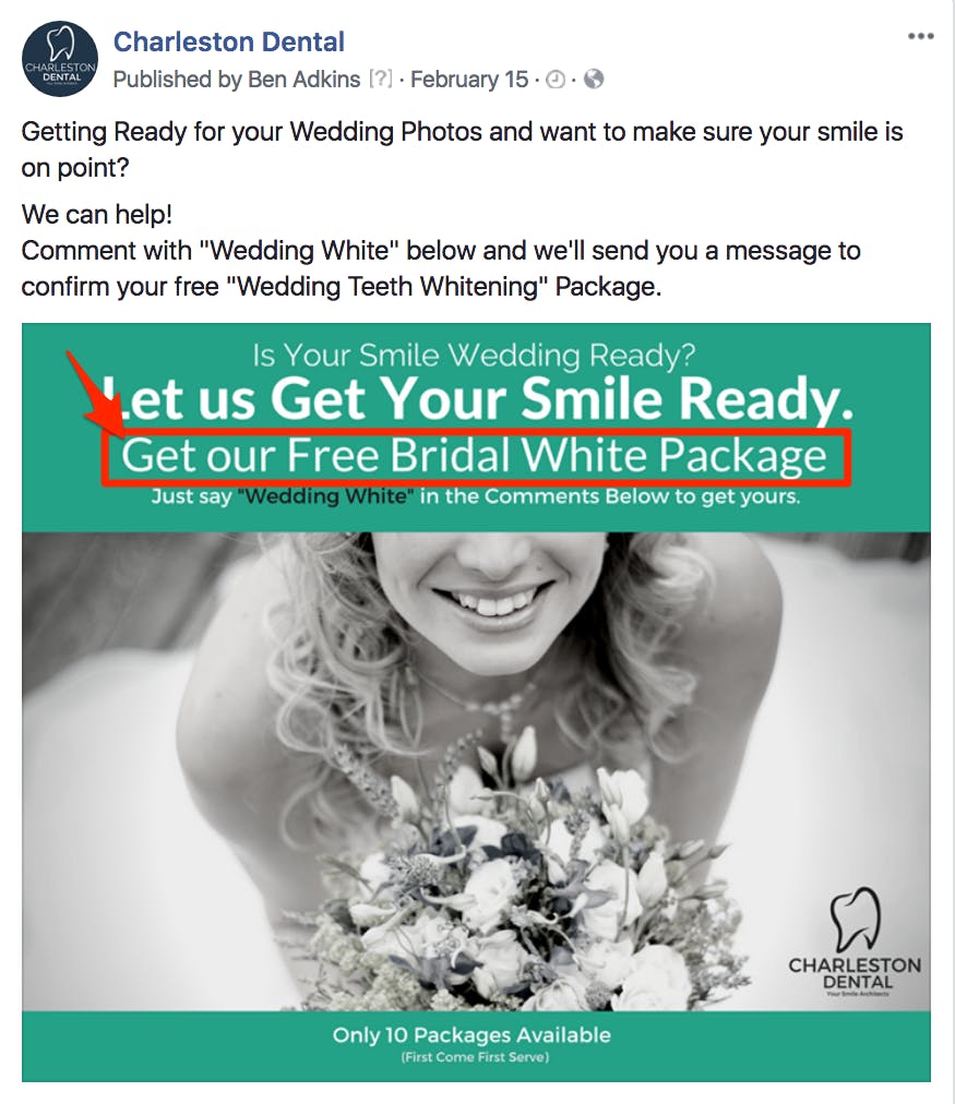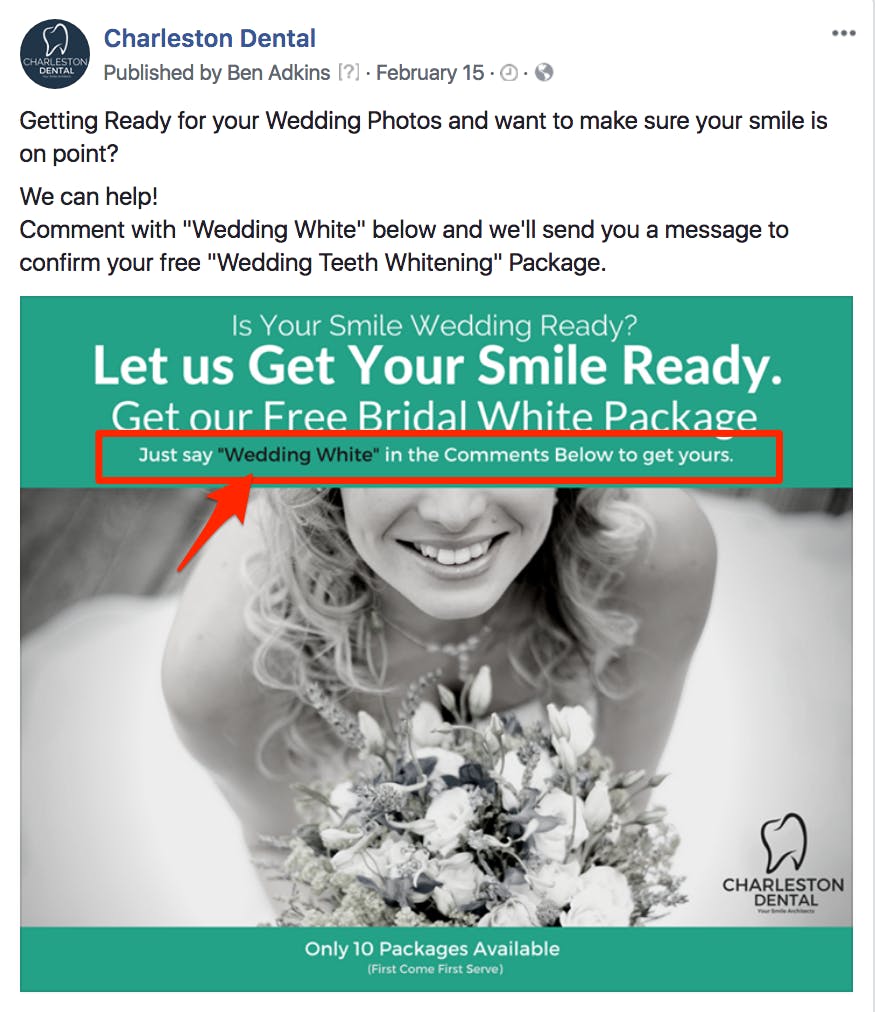 In the post that we created, we ask people to comment if they want to take advantage of the offer.